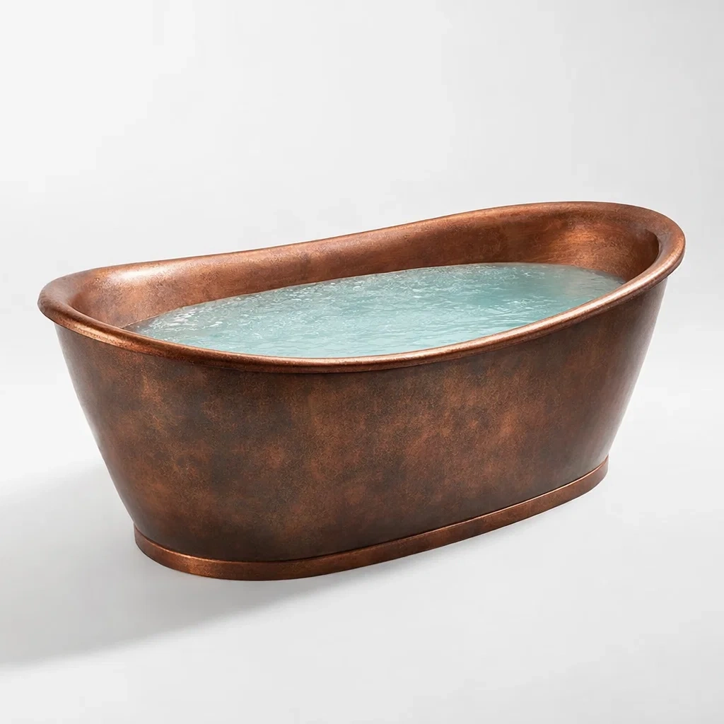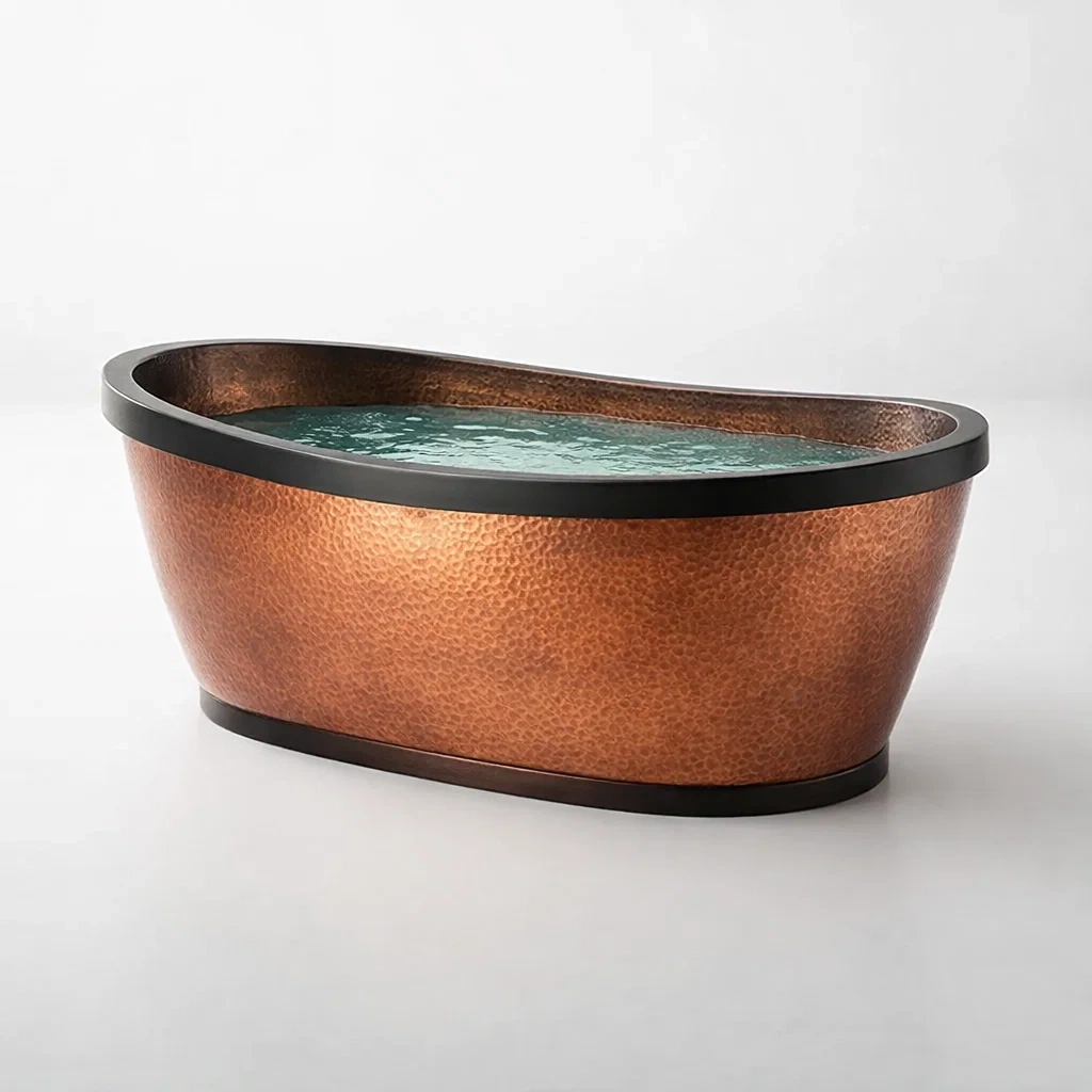 Baignoire îlot en cuivre martelé ovale 170x75x70 cm