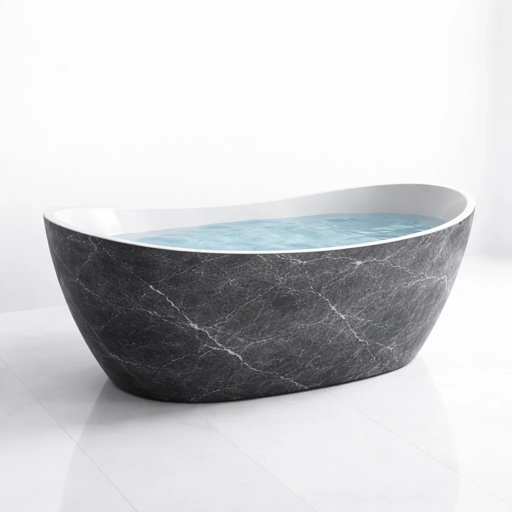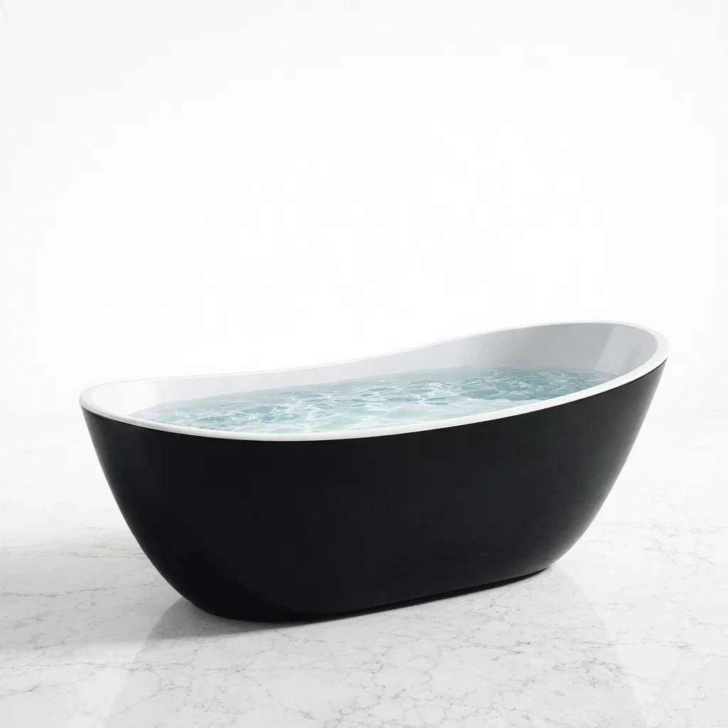 Baignoire îlot autoportante en résine acrylique noir et blanc 165 cm