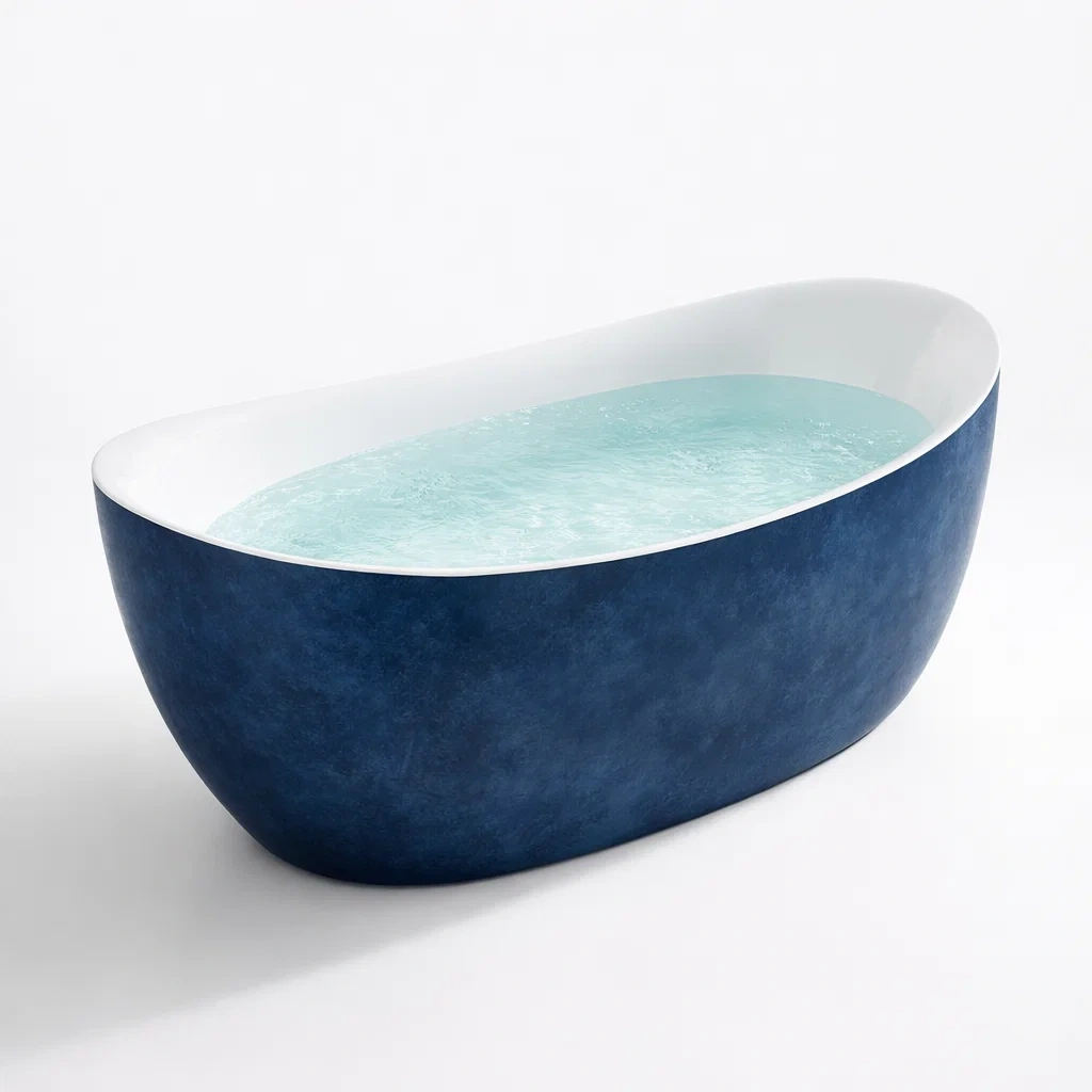 Baignoire îlot en acrylique bleu et blanc 170x80x60 cm