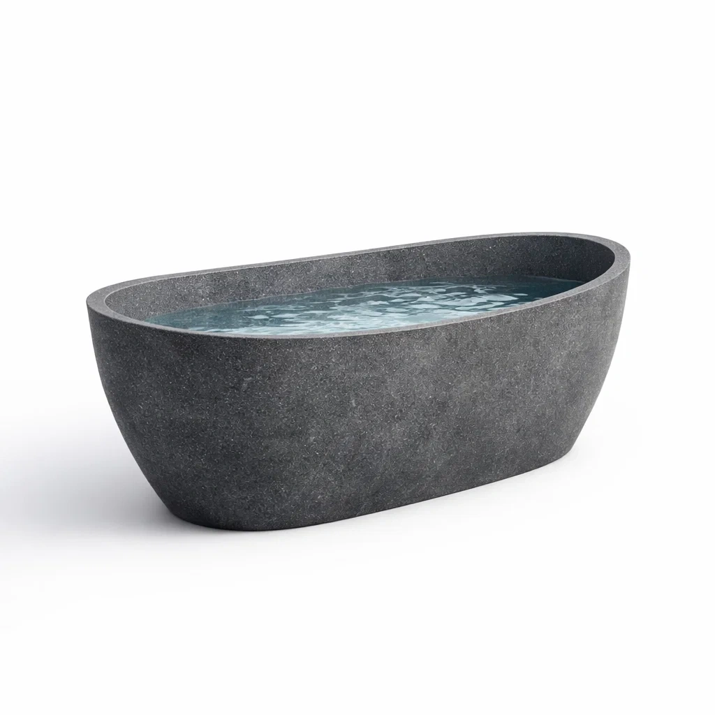 Baignoire îlot ovale en pierre gris 170x75x60 cm