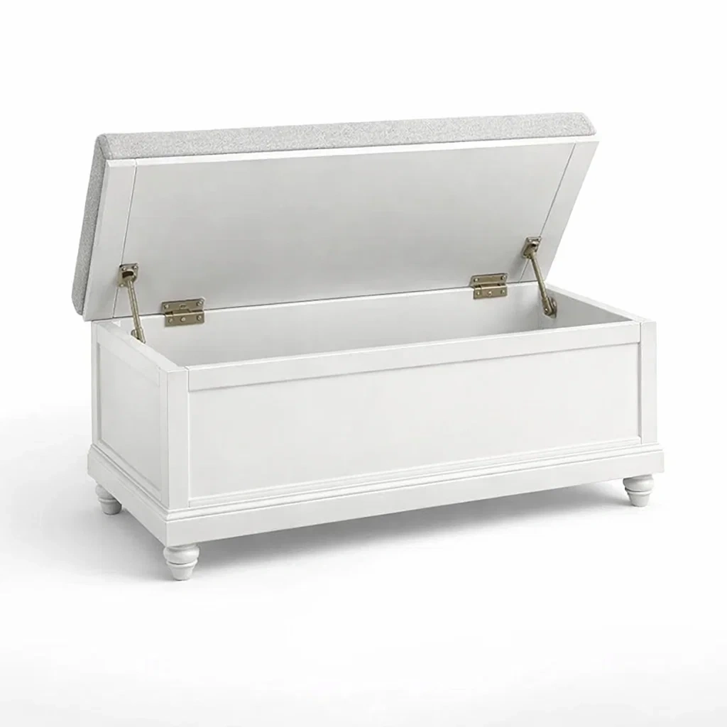 Banc de rangement en bois et tissu crème 160x40x44 cm