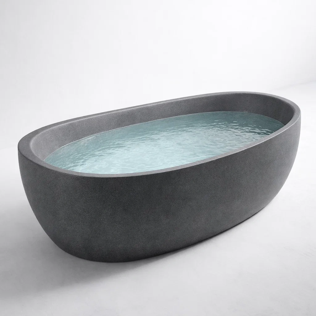 La baignoire est fabriquée en pierre composite avec une finition mate de couleur anthracite.