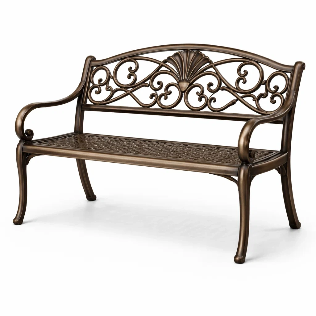 Sa couleur bronze et son design décoratif s'intègrent bien dans les espaces extérieurs. Le dossier orné ajoute une touche esthétique.