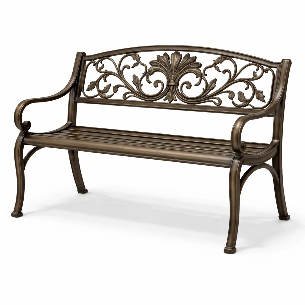 Banc de jardin en aluminium motif floral bronze 125 cm