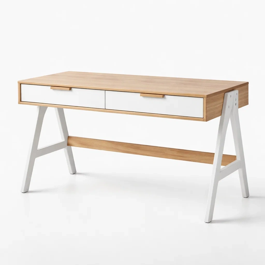 Bureau en bois et acier avec tiroirs