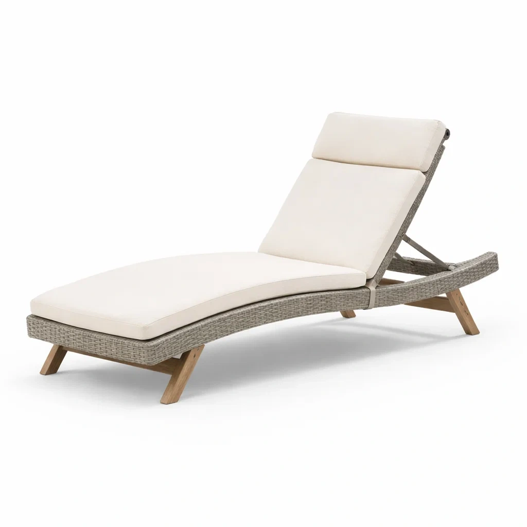 La chaise longue est fabriquée à partir de résine tressée avec un cadre en bois d'acacia. Le matelas et le dossier sont rembourrés de mousse polyuréthane pour un soutien optimal.
