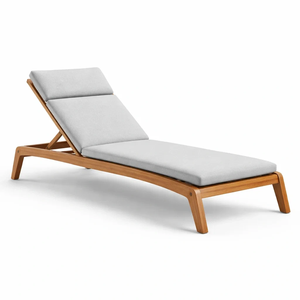 Chaise longue réglable en bois et tissu gris 200 cm