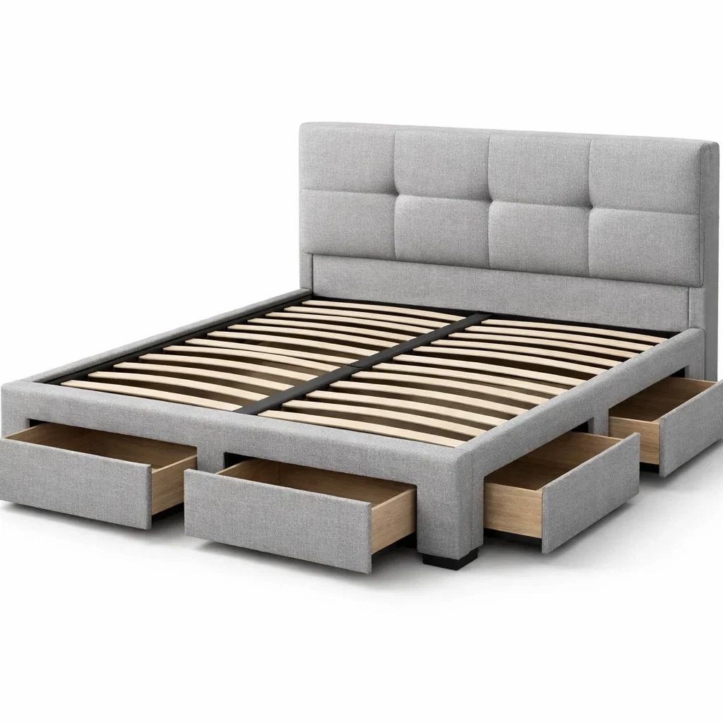 Lit avec rangement double en tissu polyester 140x200 cm gris
